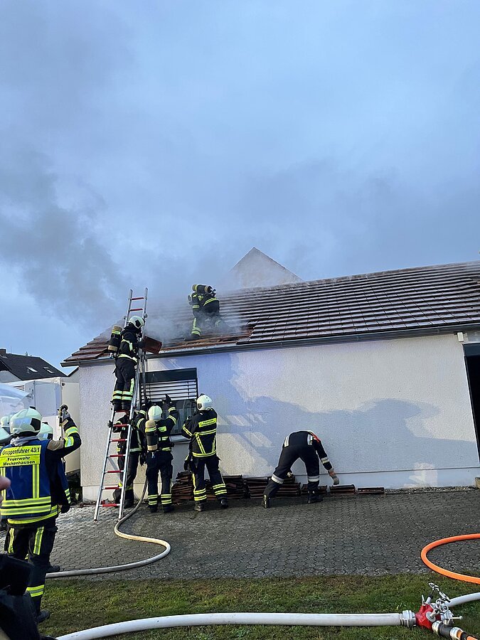 Der Teil des Daches, der nicht vom Brand betroffen war wurde im Anschluss wieder gedeckt. Der betroffene Teil wurde mit einer Folie bedeckt.