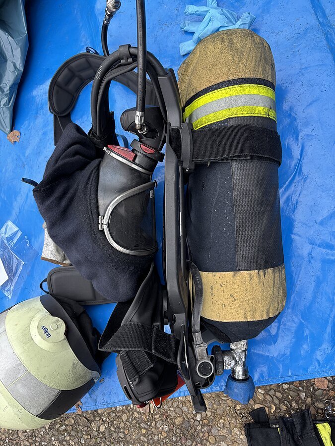 Unter Einsatz von 3 Trupps mit schwerem Atemschutz sowie 1 C-Rohr und 2 Lüftern wurde der Brand im Keller bekämpft und das Gebaude anschließend belüftet. Die eingesetzten Trupps zogen nach ihrem Einsatz die verdreckten Atemschutzgeräte sowie die verdreckte Einsatzkleidung am aufgebauten Dekon-Platz aus.