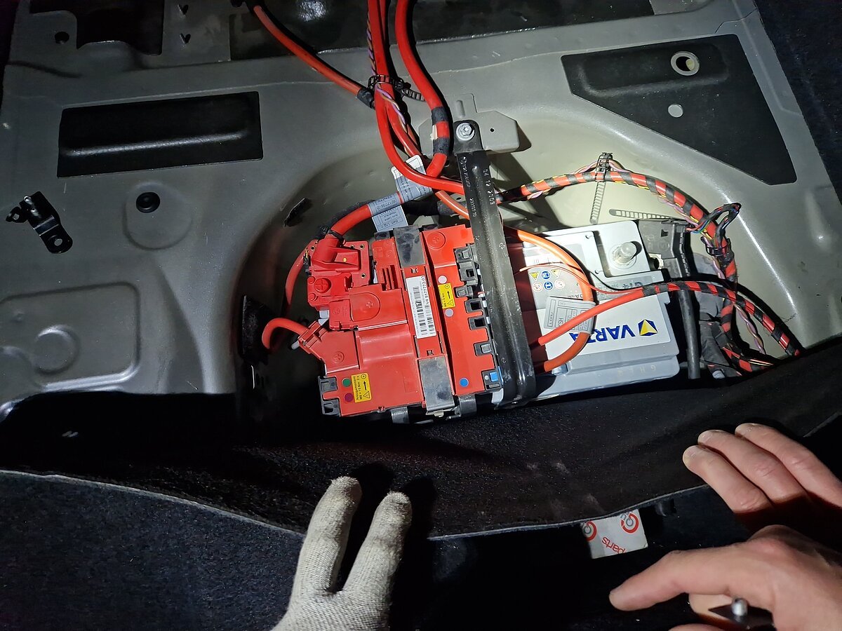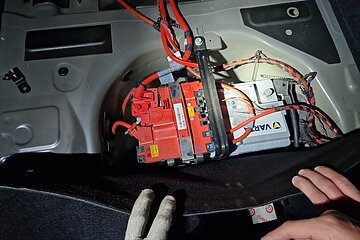 Wir schoben das Fahrzeug auf den nahegelegenen Parkplatz und klemmten vorsichtshalber die Batterie ab.