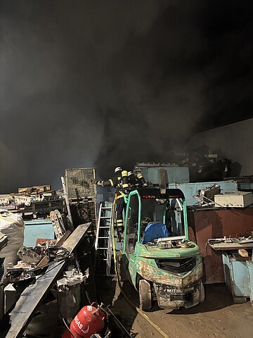 Im späteren Verlauf des Einsatzes konnte der im Weg stehende Stapler entfernt werden und wir hatten eine einfachere Zugangsmöglichkeit für die Nachkontrolle.