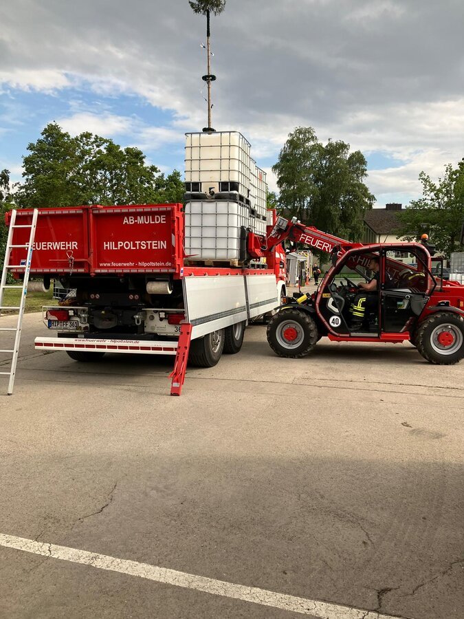 Vor Abfahrt bedankten sich noch die Kräfte der Feuerwehr Ebenhausen und der Bürgermeister beim gesamten Kontingent.