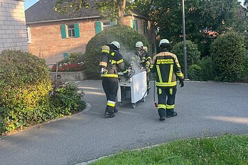 Unter Einsatz von Atemschutz kontrollierten wir die Friteuse mittels Wärmebildkamera und brachten diese anschließen an die frische Luft.
