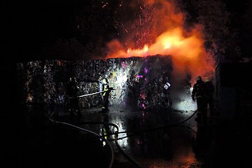 Da beim Verladen der gepressten Papierballen in Pyras erneut Rauch aufstieg, mussten Nachlöscharbeiten durchgeführt werden.