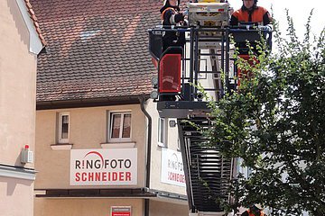 Das BRK forderte für eine Personenrettung aus einem Wohnhaus in Hilpoltstein die Drehleiter der Feuerwehr an. Nachdem die Person über die Drehleiter gerettet und dem BRK übergeben wurde, konnte ...