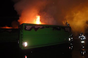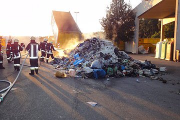 Auf der Wertstoffsortieranlage in Pyras brannte ein Container mit Kunststoffabfällen. Nach dem Auskippen des Abfalles wurde dieser mit einem Radlader verteilt und anschließend abgelöscht.