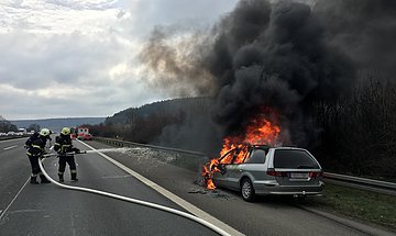 Ein Fahrzeug war durch einen technischen Defekt in Brand geraten und wurde auf dem Seitenstreifen abgestellt. Beim Eintreffen stand der PKW bereits in Vollbrand und alle Personen hatten sich aus dem Fahrzeug in Sicherheit gebracht.