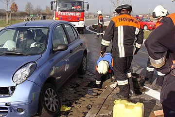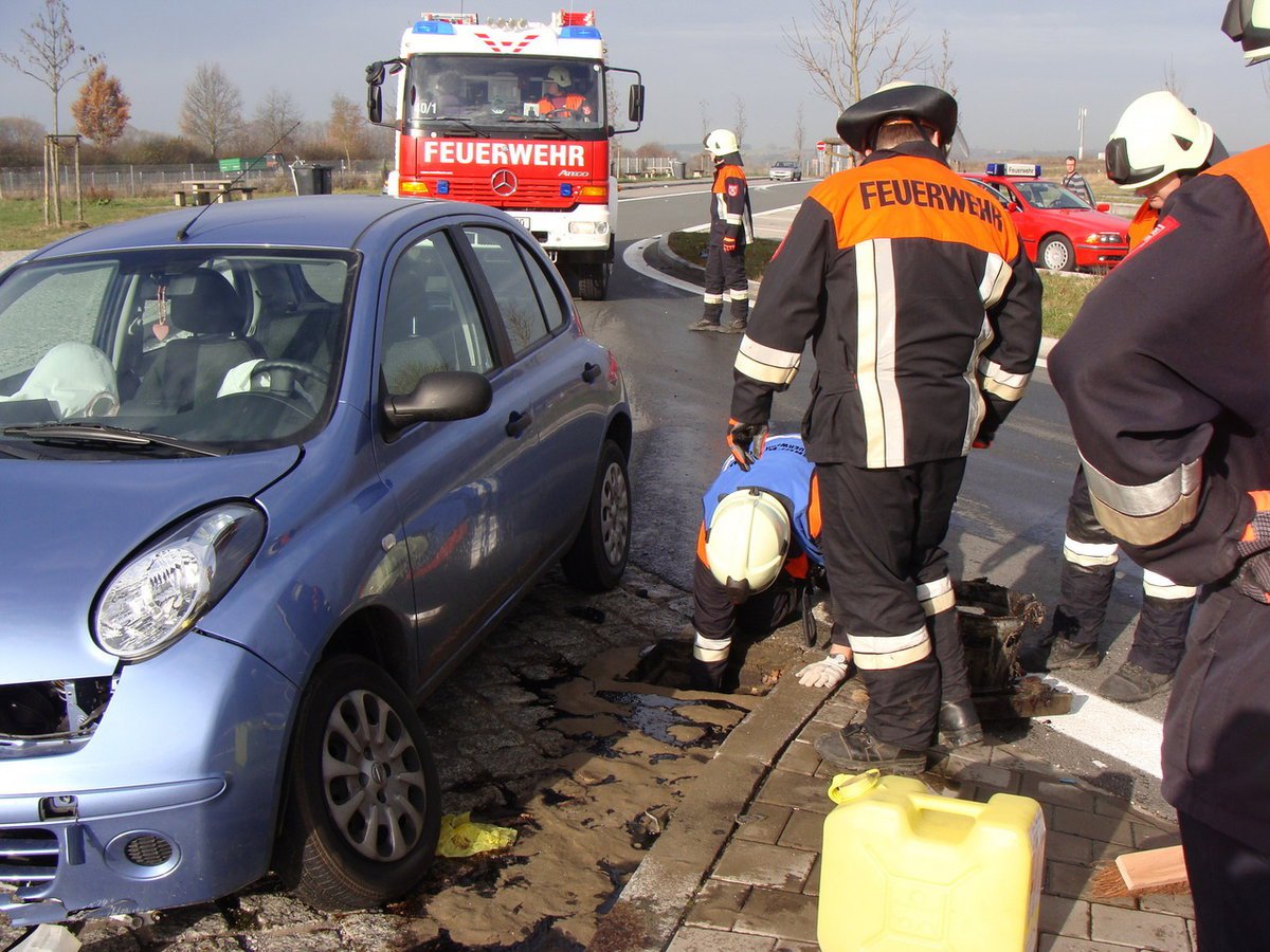 Am heutigen Samstag wurde die Feuerwehr Hilpoltstein auf die A9, Fahrtrichtung München, Parkplatz Offenbau alarmiert. Dort war ein PKW beim Einfahren in den Parkplatz auf eine Verkehrsinsel gefahren. Dabei riss er sich die Ölwanne auf. Die Feuerwehr Hilpoltstein band die auslaufenden Betriebsstoffe.