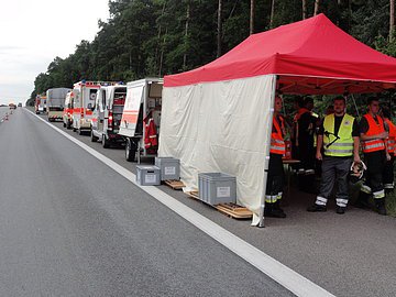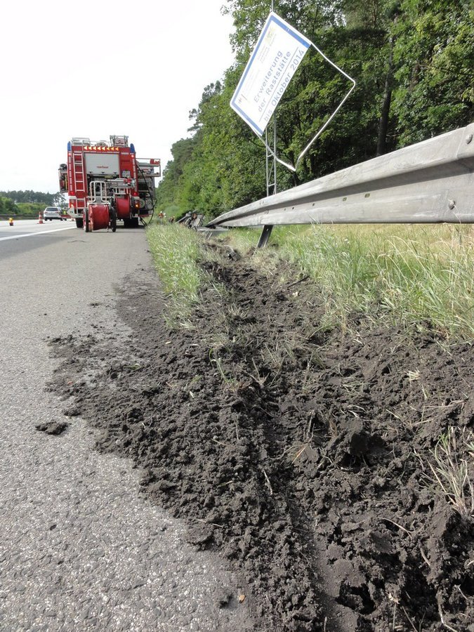 Nach der Sperrung der rechten Fahrspur, wurde der Dieseltank abgedichtet, der restliche Kraftstoff abgepumpt und eine Ölsperre errichtet.