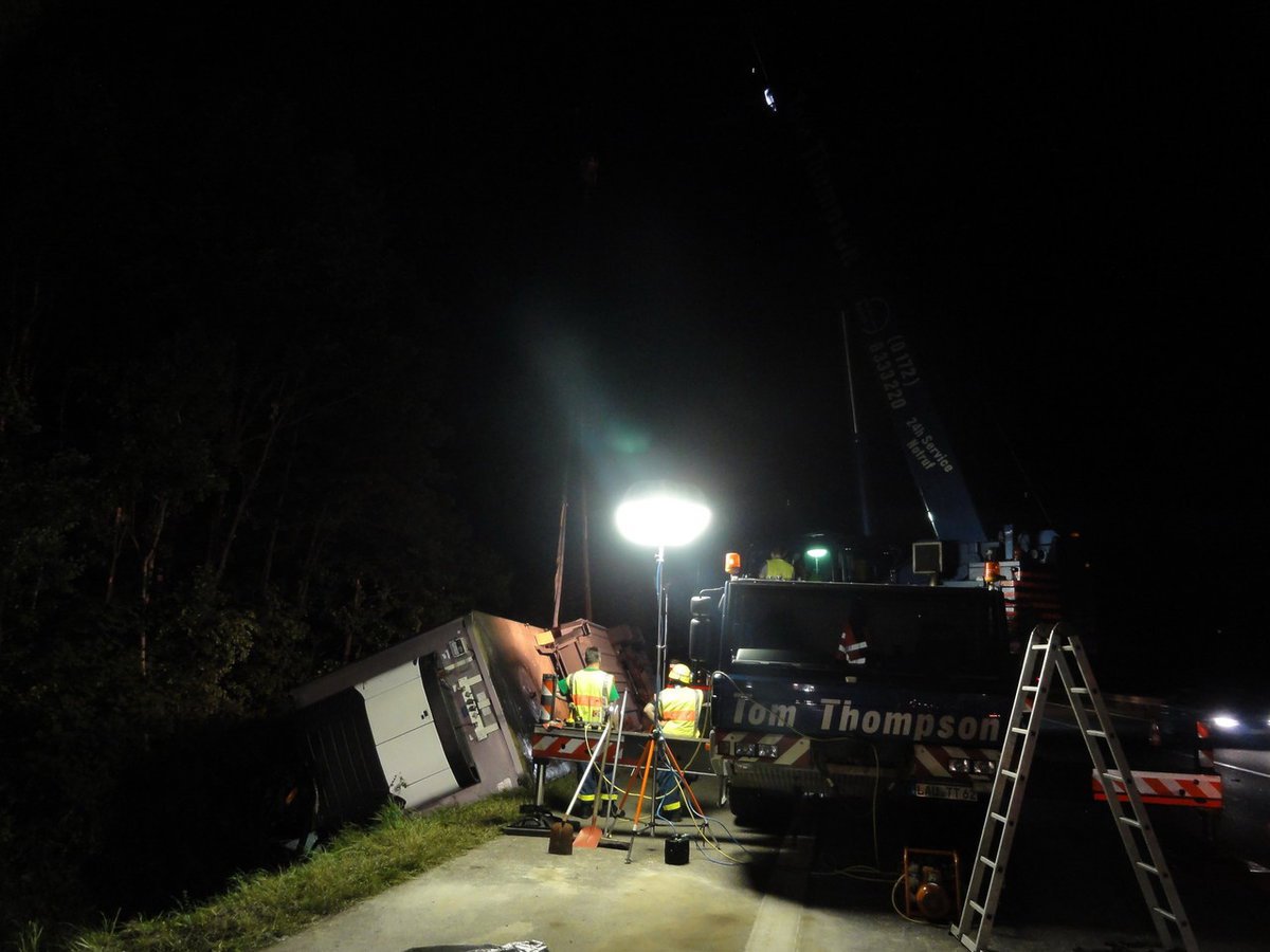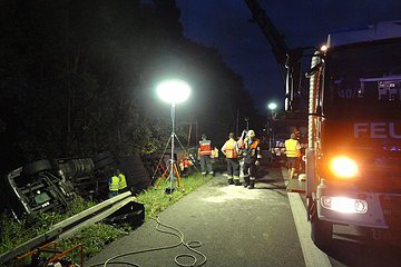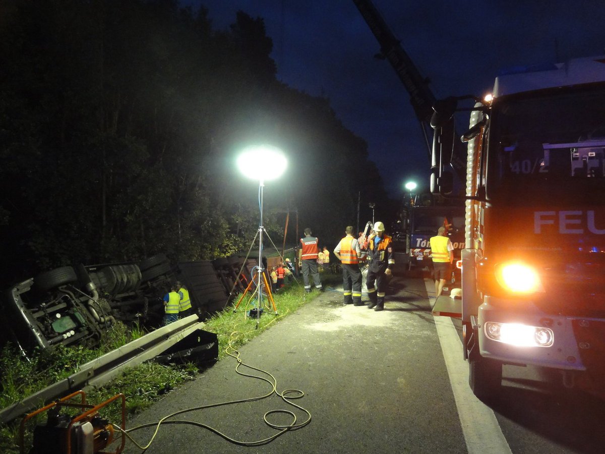 Die Bergung vom LKW, sowie die Umlade- und Aufräumarbeiten dauerten bis in die frühen Morgenstunden an. Unterstützt wurde der Einsatz vom THW Hilpoltstein. Für die Verpflegung der Einsatzkräfte war die SEG aus Georgensgmünd und die Bereitschaft aus Allersberg im Einsatz.