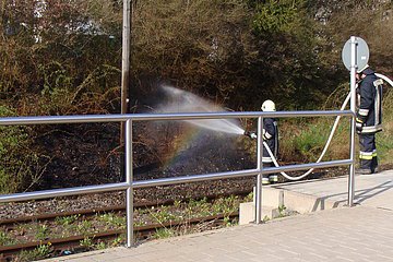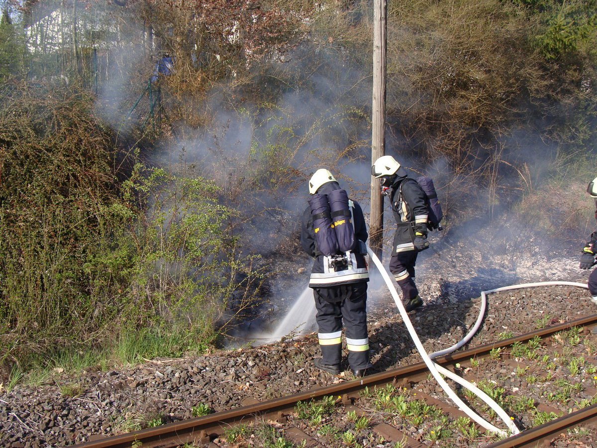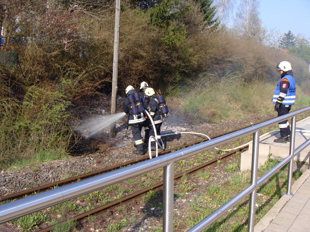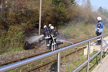 Am Bahnhof in Hilpoltstein brannte aus noch ungeklärter Ursache der Bahndamm. Mit einem C-Rohr und einem Trupp unter Atemschutz war der Brand schnell unter Kontrolle. Der Bahnverkehr wurde durch die Löscharbeiten nicht behindert.