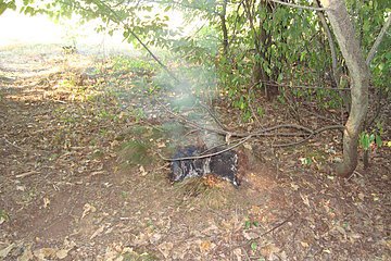 In der Nähe des Sportplatzes musste ein brennender Baumstumpf abgelöscht werden.