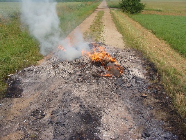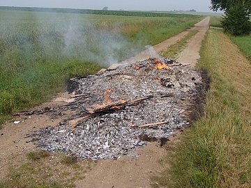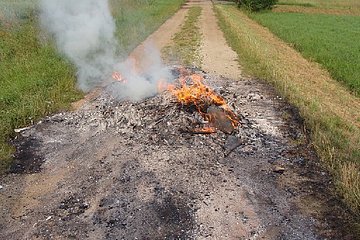 Auf einem Feldweg zwischen Meckenhausen und Rabenhof brannte ein Bretterhaufen, den die Feuerwehr Hilpoltstein löschen musste.