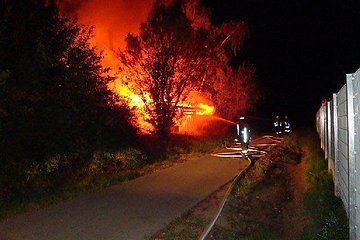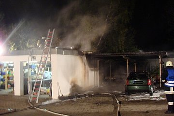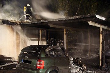 In den frühen Morgenstunden des Burgfestmontags wurde die Hilpoltsteiner Wehr, zusammen mit den Ortsteilwehren Meckenhausen, Zell, Unterrödel und Hofstetten zu einem Brand in den Eisvogelweg alarmiert. Beim Eintreffen der Einsatzkräfte stand ein Carport, ein darin befindlicher PKW und der hinten angebaute Holzschuppen in Vollbrand. Durch das schnelle Eingreifen der freiwilligen Helfer konnte ein Schaden an den nebenstehenden Garagen größtenteils verhindert werden. Nach kurzer Zeit konnte das Feuer unter Kontrolle gebracht werden, und die Wehren wieder in die Gerätehäuser einrücken. Es entstand ein Sachschaden in Höhe von ca. 70.000 Euro. Die Kriminalpolizei geht nach ersten Ermittlungen von Brandstiftung aus.