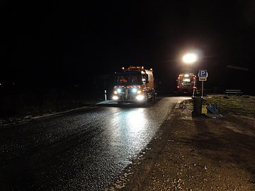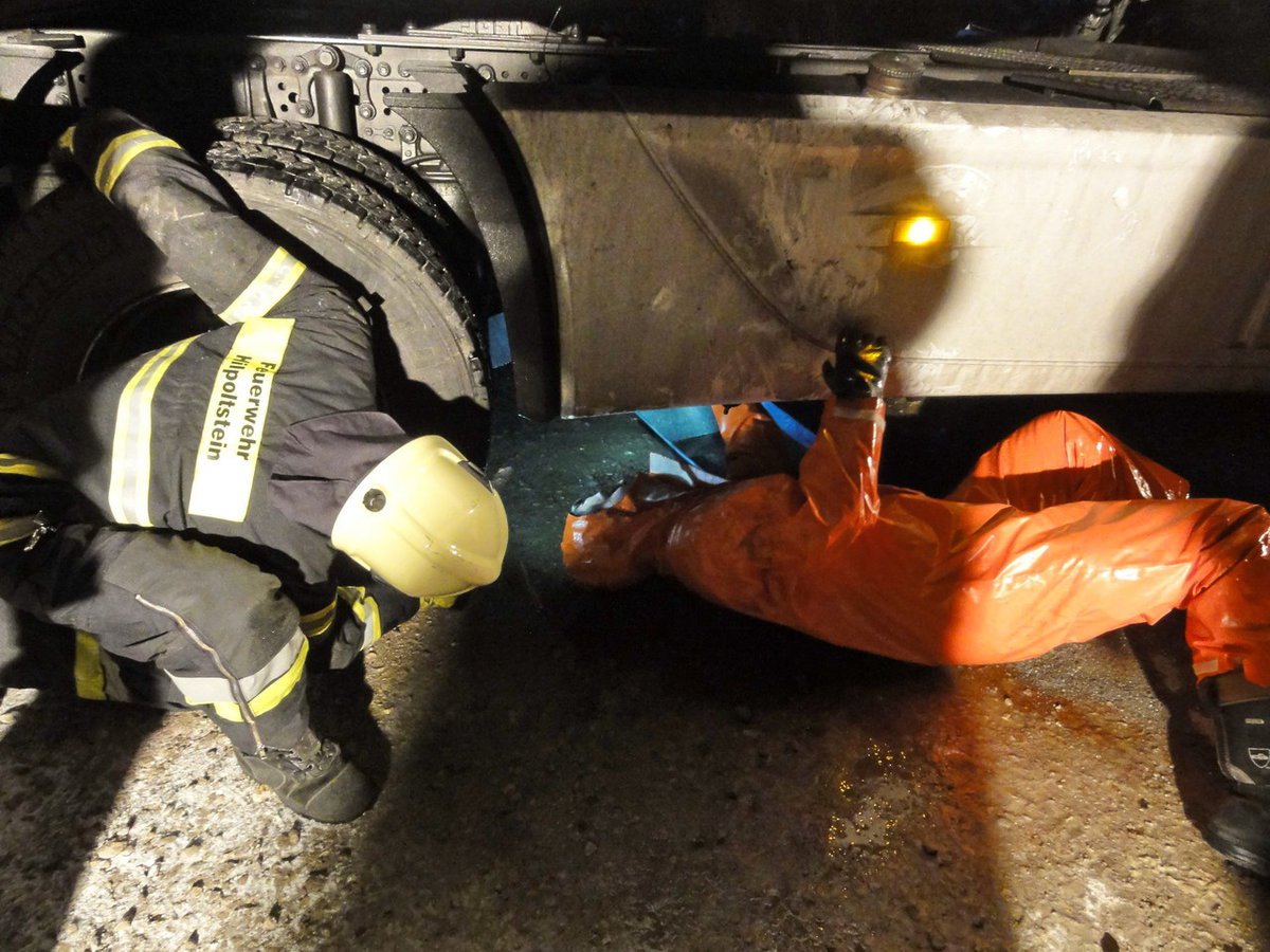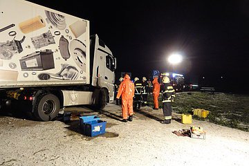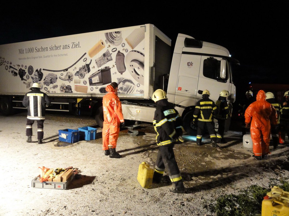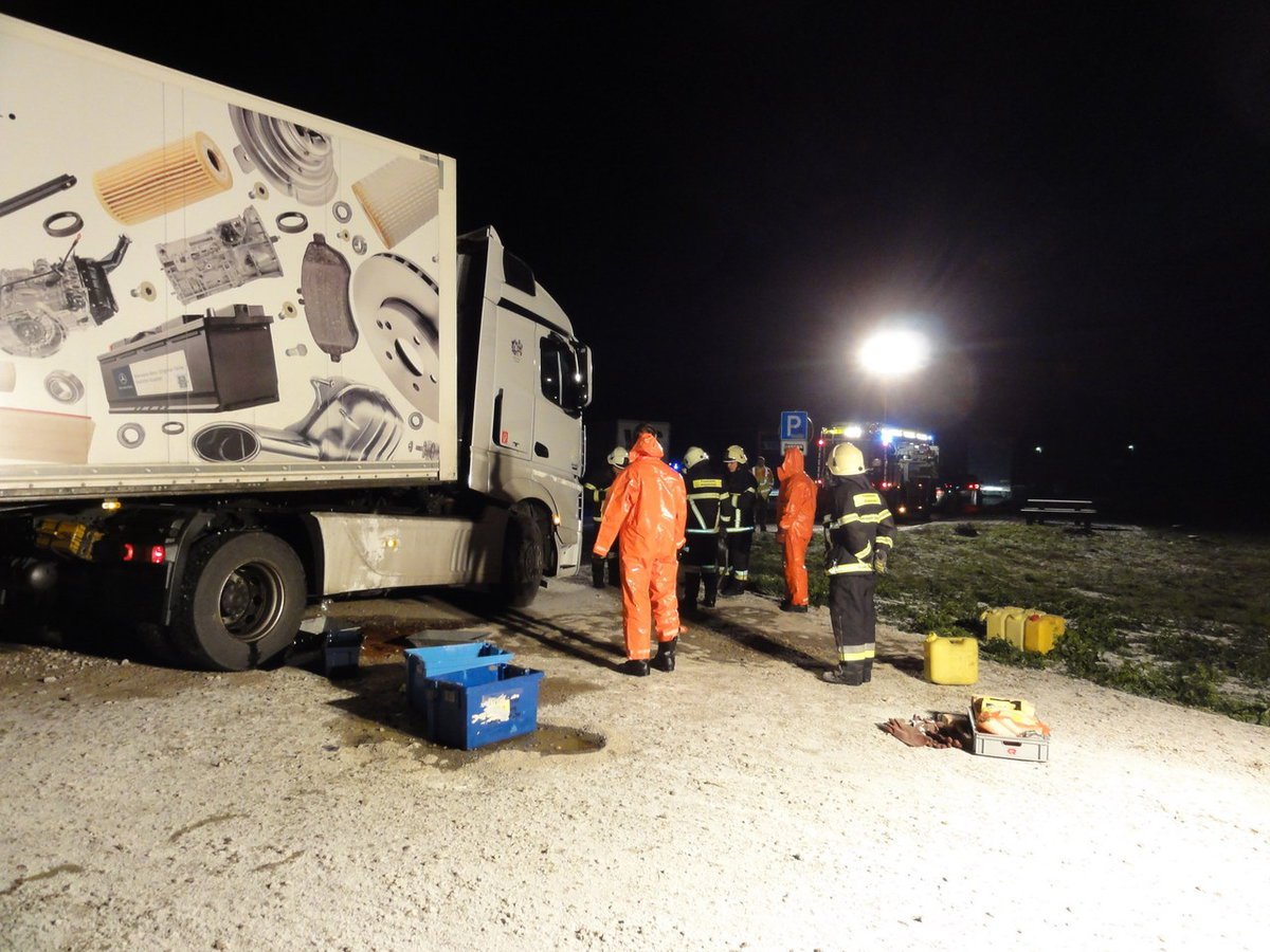 Heute, kurz vor 17:00 Uhr, wurde die Feuerwehr zu einem Ölschaden auf die A9, Parkplatz Göggelsbuch, Fahrtrichtung Norden alarmiert. Gemeldet wurde "auslaufender Kraftstoff aus PKW" - vor Ort wurde jedoch ein LKW angetroffen, der sich beim Überfahren von Fahrzeugteilen den Dieseltank aufgerissen und noch ca. 700 Liter in den beiden Tanks hatte. Das Leck konnte abgedichtet werden. Mit Hilfe der Autobahnmeisterei und einer Spezialfirma mussten Bereiche des Parkplatzes, sowie die Einfahrt gereinigt werden. Nach ca. 3 Stunden konnte der Einsatz beendet werden.