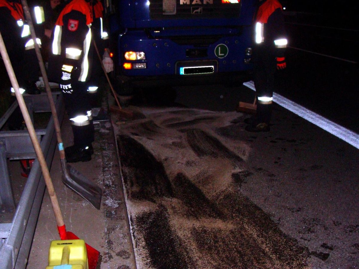 Auf der A9 in Fahrtrichtung München riss sich aus noch ungeklärter Ursache ein LKW seinen Treibstofftank auf. Der auslaufende Diesel wurde aufgefangen und die Fahrbahn gereinigt. Nach ca. zwei Stunden war der Einsatz beendet.