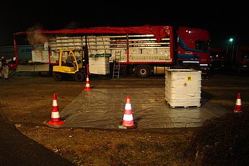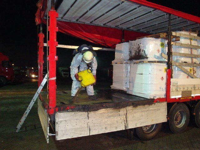 Am heutigen Donnerstag Abend wurde die Feuerwehr Hilpoltstein zu einem auslaufenden Gefahrstoff am Autohof Sindersdorf alarmiert. Die Ladung eines LKW`s mit leicht entzündlicher Flüssigkeit war auf Grund eines defekten Deckel an einem Faß ausgelaufen. Beim Eintreffen wurde sofort damit begonnen den Brandschutz sicher zu stellen. Ebenso ging ein Trupp unter leichten Chemiekalienschutzanzug zur Erkundung vor. Mit Hilfe eines Gabelstaplers einer benachbarten Firma wurde anschließend mit dem Entladen des auslaufenden Fasses begonnen. Nach einer aufwendigen Reinigung der Ladefläche konnte der Einsatz nach zwei Stunden beendet werden. Zur Unterstützung wurde die FFW Meckenhausen nachalarmiert.