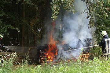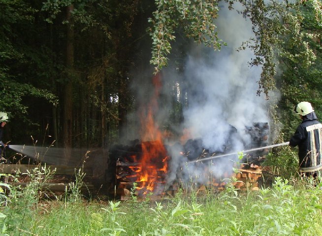 Aus noch ungeklärter Ursache brannte in der Nähe vom Kränzleinsberg ein Holzstoß. Die Feuerwehren Hilpoltstein und Zell löschten den Brand mit zwei C-Rohren.
