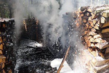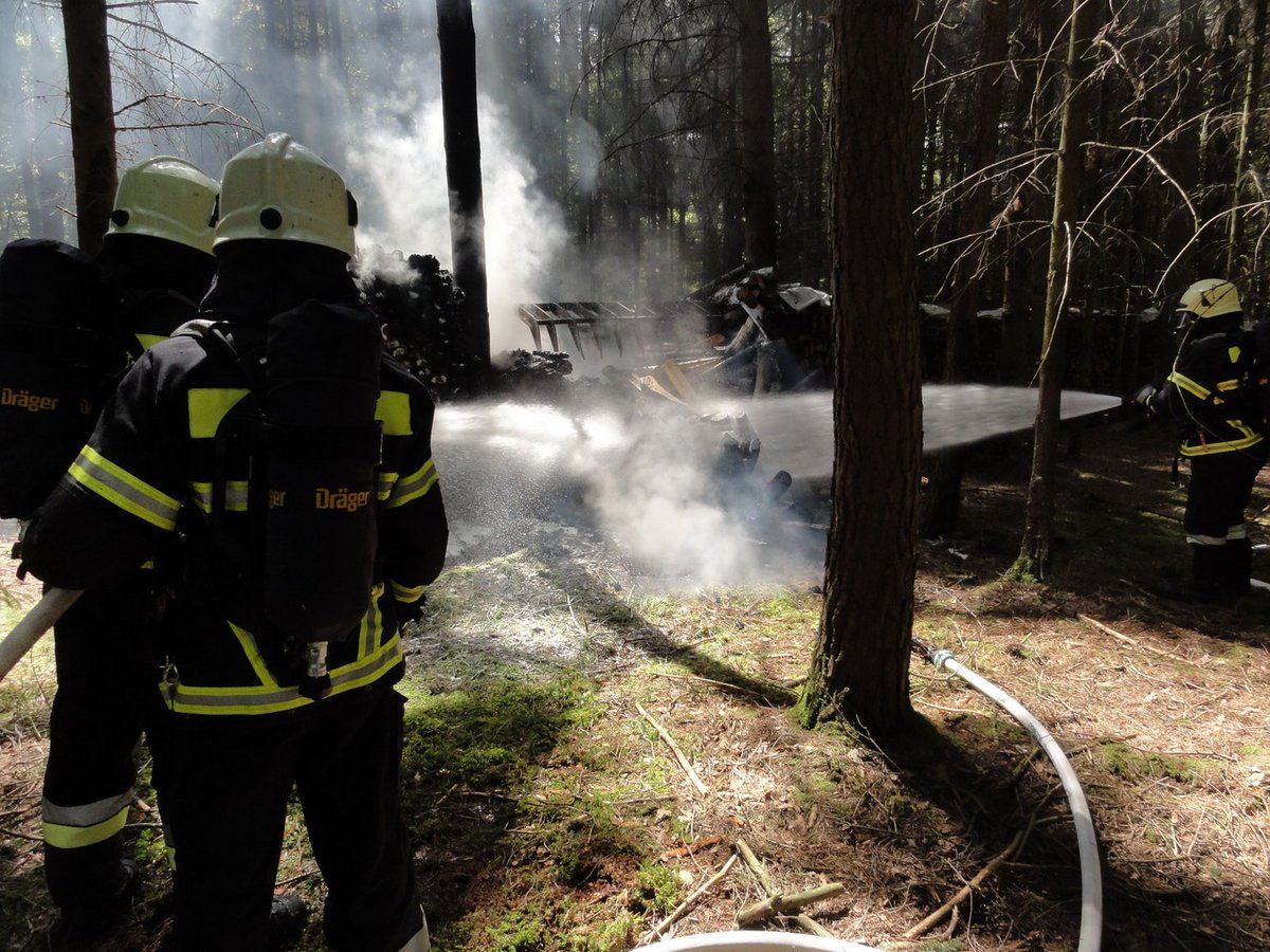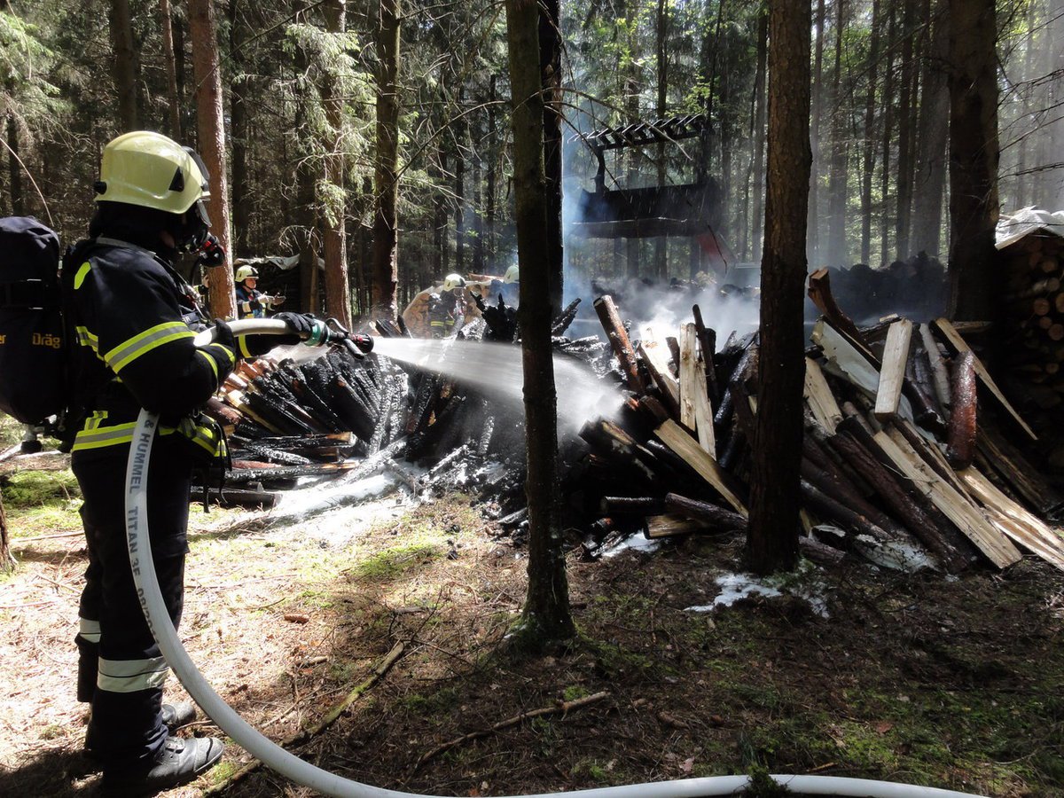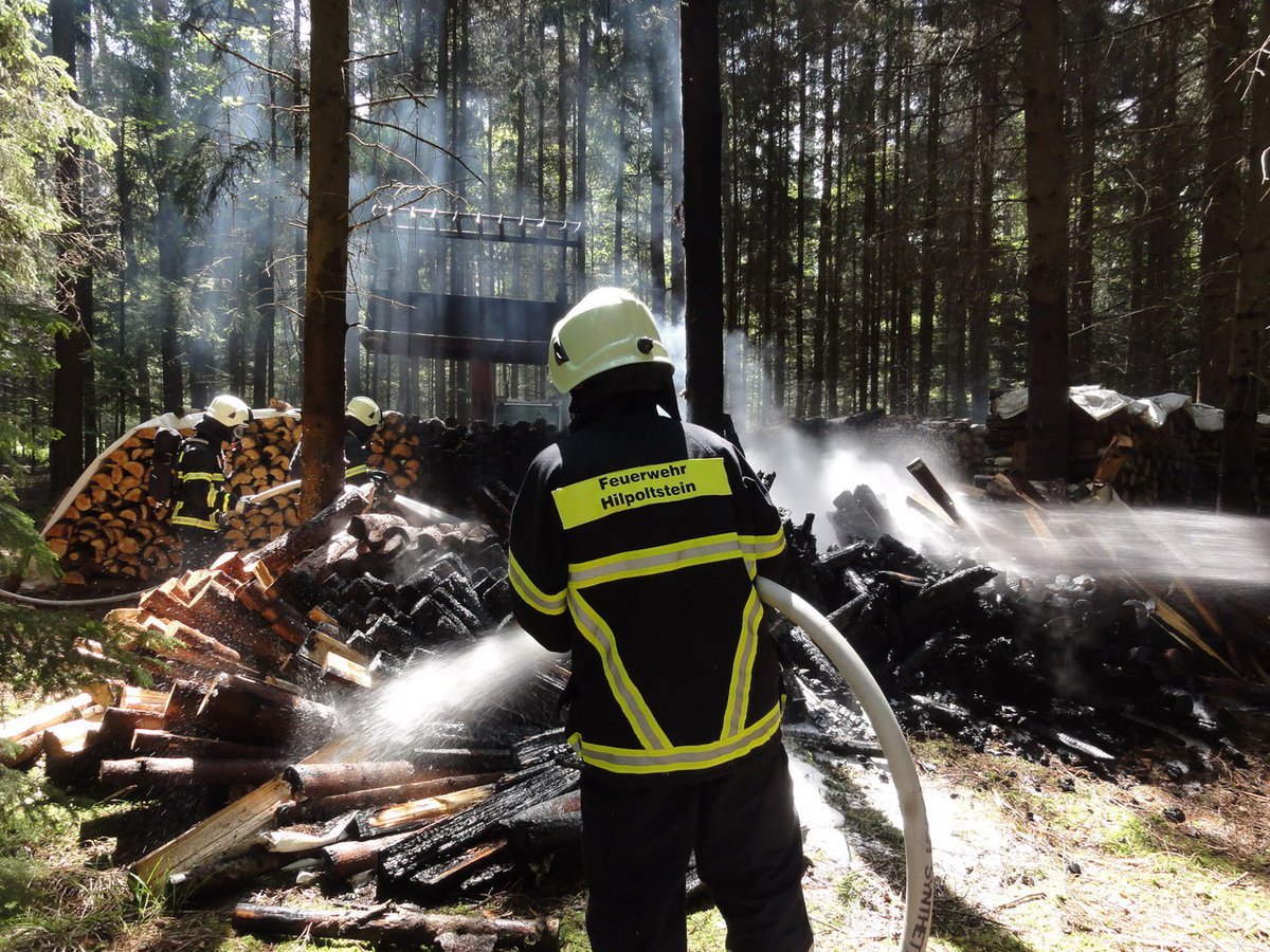 Kurz vor der Autobahnunterführung Richtung Mörlach brannte in einem Waldstück ein Holzstoß in voller Ausdehnung. Mit zwei Trupps unter Atemschutz und zwei C-Rohren wurde der Brand bekämpft. Nach den Nachlöscharbeiten konnten die Feuerwehren Mörlach und Hilpoltstein den Einsatz beenden. Die Polizei hat die Ermittlungen wegen Brandstiftung aufgenommen.