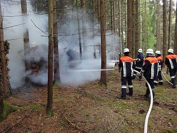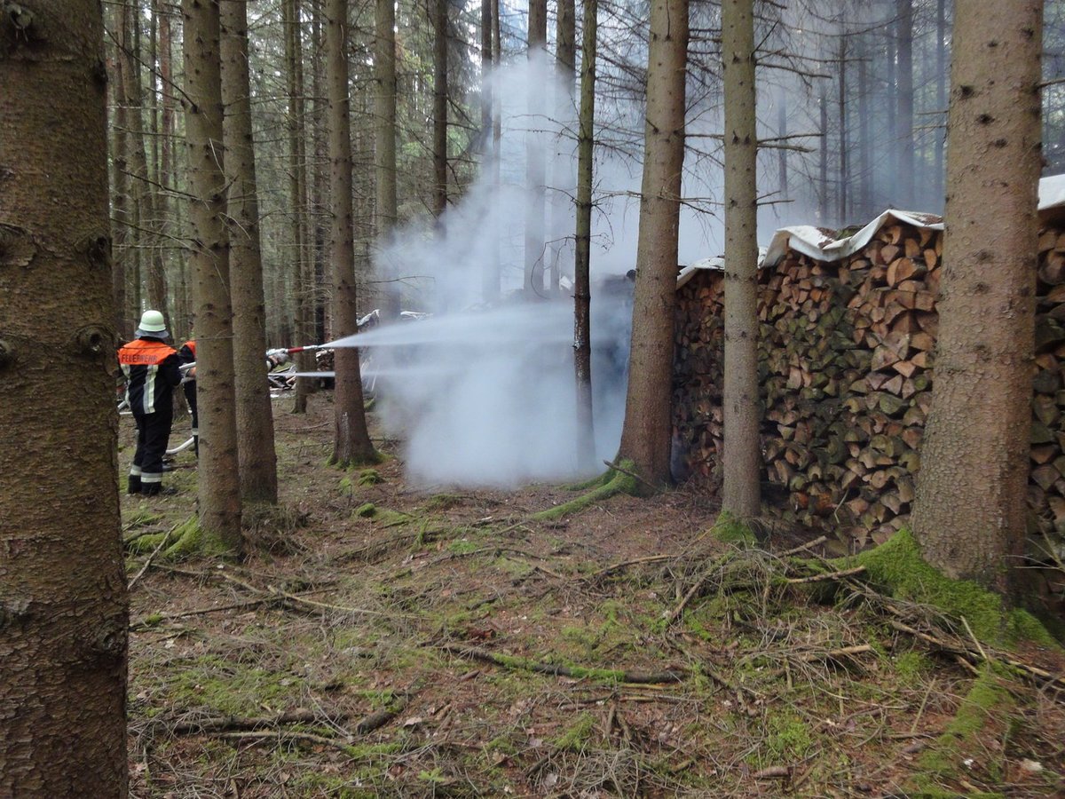 Erneut brannte kurz vor der Autobahnunterführung Richtung Mörlach in einem Waldstück ein Holzstoß. Der Brand war nach kurzer Zeit durch die Feuerwehr unter Kontrolle.