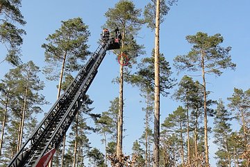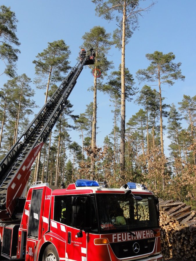 Die Feuerwehr Zell wurde zu einer Katze auf Baum alarmiert. Beim Rettungsversuch mit der Drehleiter rettete sich die Katze vor Angst selbst vom Baum.