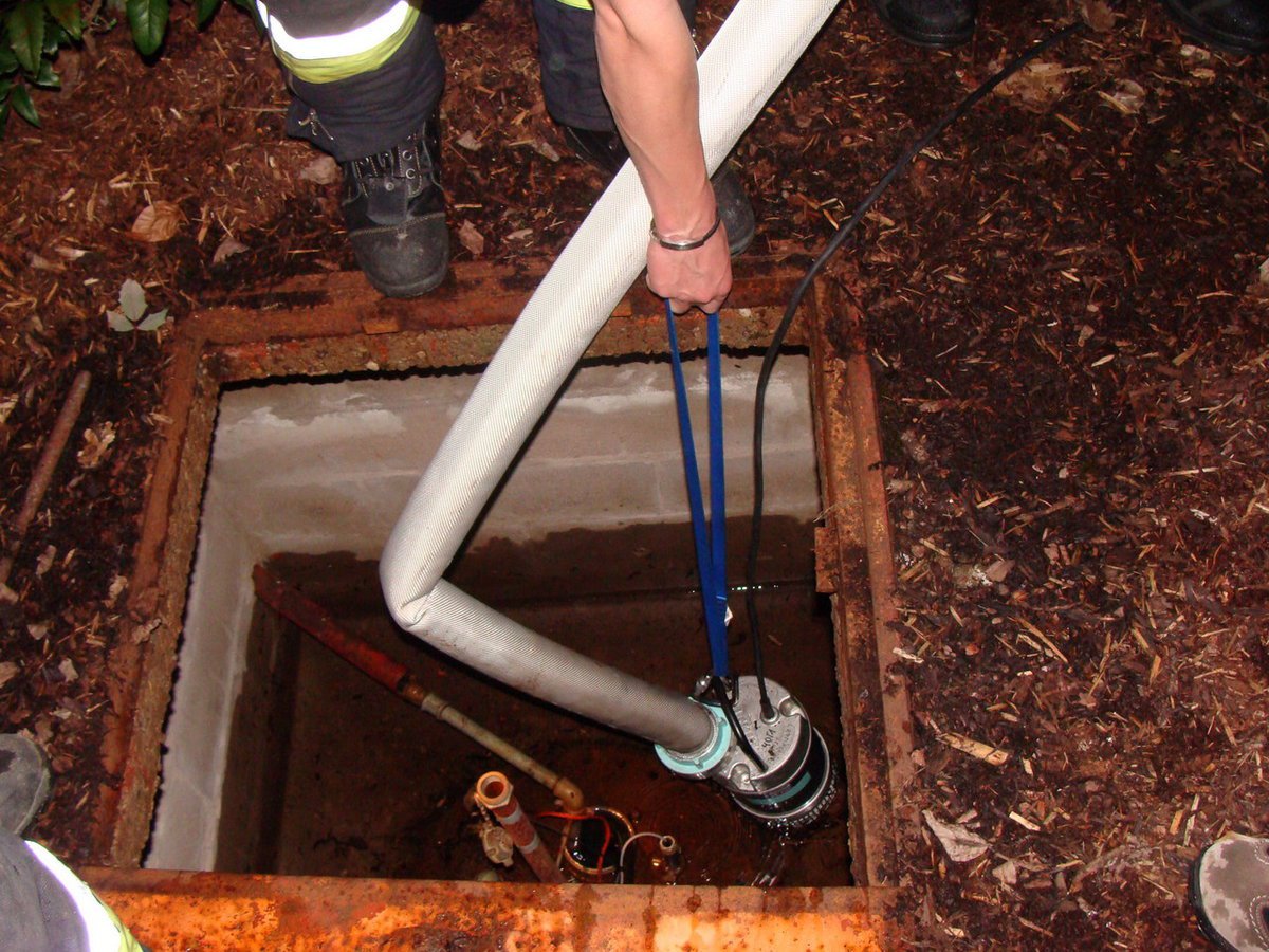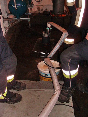 In einer Hilpoltsteiner Firma stand ein Keller ca. 30 cm unter Wasser. Mit Hilfe der Tauchpumpe wurde dieser ausgepumpt.
