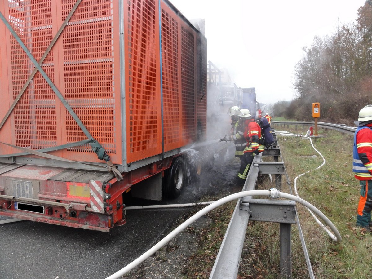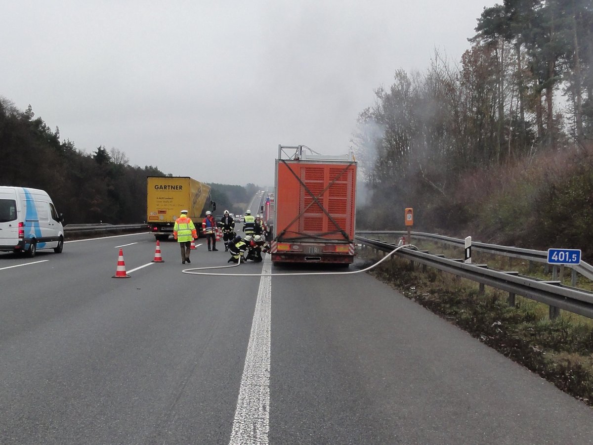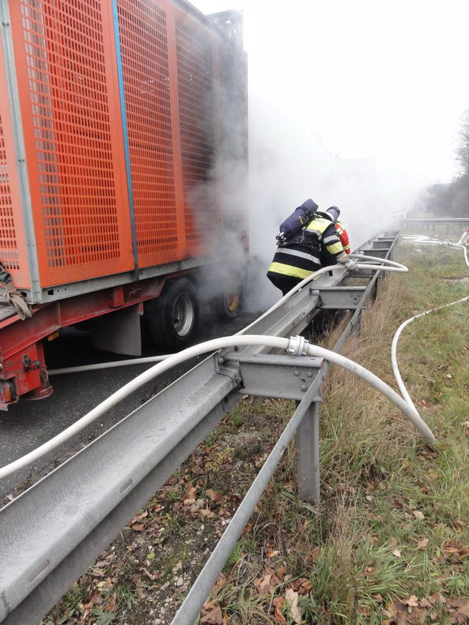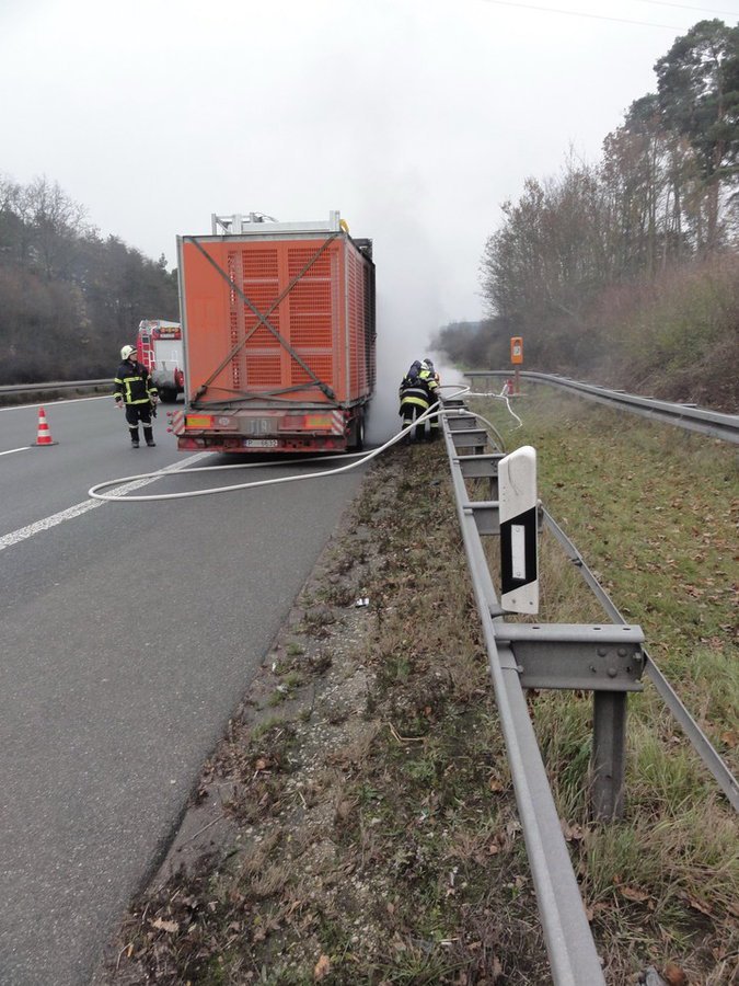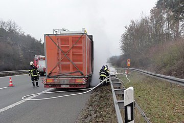 Die Feuerwehr Hilpoltstein wurde zusammen mit der Feuerwehr Allersberg zu einem LKW-Brand auf die A9, Fahrtrichtung München, zwischen den Anschlussstellen Allersberg und Hilpoltstein alarmiert. Die Lage stellte sich beim Eintreffen der Kräfte so dar, dass der Sattelauflieger im Bereich der Hinterachse brannte. Die Feuerwehr Hilpoltstein stellte mit dem Sondertanklöschfahrzeug die Wasserversorgung für die Allersberger Kräfte sicher. Der Brand konnte schnell unter Kontrolle gebracht werden.