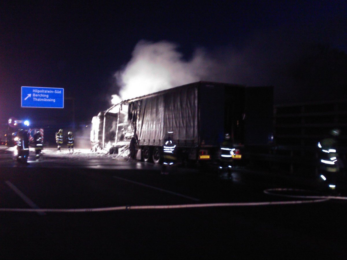 Nach einem Verkehrsunfall auf der A9 Km 407 in Richtung München standen kurz vor der Ausfahrt Hilpoltstein ein LKW sowie ein PKW in Vollbrand. Die zuständige Feuerwehr Allersberg forderte zur Sicherstellung der Löschwasserversorgung die Hilpoltsteiner Wehr an. Gegen 22:00 Uhr konnte das eingesetzte Sondertanklöschfahrzeug seinen Einsatz beenden und wieder einrücken.
