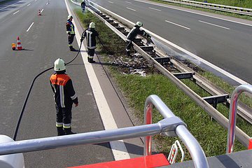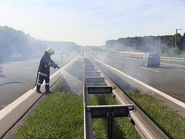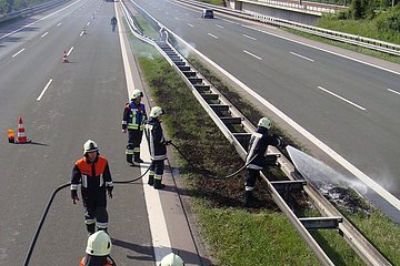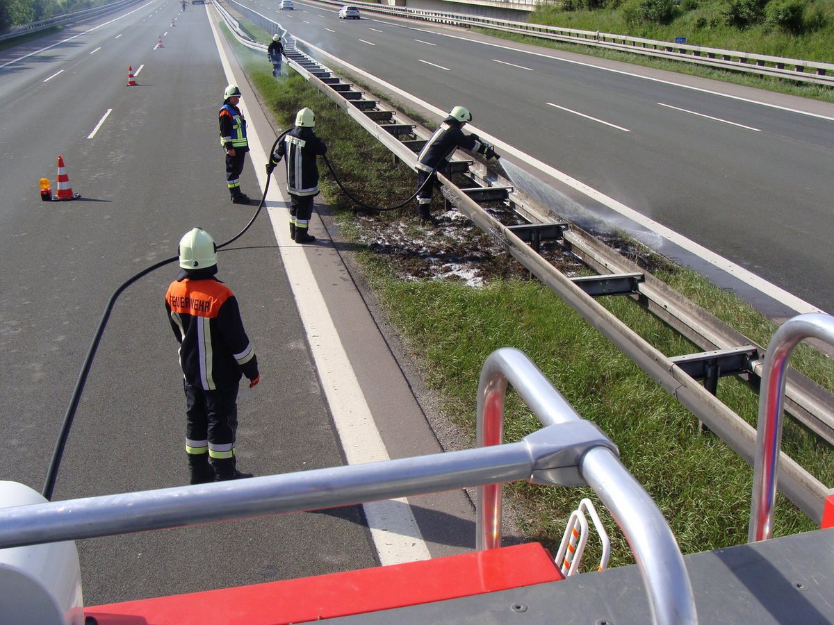 Am Sonntagmorgen wurde die Feuerwehr Hilpoltstein auf die A9 bei Kilometer 405 in Fahrtrichtung Nürnberg gerufen. Dort brannte auf einer Länge von 15 Metern der Mittelstreifen. Die linke Fahrspur wurde abgesichert und der Brand abgelöscht.