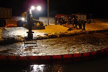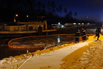 Bei einem Tankschiff, dass sich auf dem Main-Donau-Kanal befand, lief Öl aus einem Leck (durch Eisschollen verursacht). Zusammen mit dem THW wurden Ölsperren errichtet. Durch Taucher wurde das Leck abgedichtet. Anschließend wurde das Öl-Wasser-Gemisch in die leeren Tanks des Schiffes gepumpt. Mit einem Bagger wurde das ölbedeckte Eis aus der Ölsperre gebaggert.
