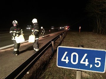 Auf der A9, bei Kilometer 404,5 in Fahrtrichtung Nürnberg, musste eine ca. 50 Meter lange Ölspur durch die Feuerwehr gebunden werden.