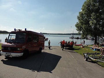 Am heutigen Freitagabend kam es zu einem tragischen Badeunfall am Rothsee bei Heuberg. Eine männliche Person wurde nahe des Steges vermisst. Mit Booten, Tauchern und gebildeten Menschenketten wurde nach der vermissten Person gesucht. Nach ca. 15 Minuten konnte die Person in der Nähe des Ufers aufgefunden und dem Rettungsdienst übergeben werden. Für die Angehörigen war ein Notfallseelsorger im Einsatz.
