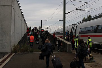 Am heutigen Montag wurden die Feuerwehren Hilpoltstein, Greding und Offenbau mit der Meldung "Person unter Zug" auf die Bahnstrecke Nürnberg - München alarmiert. Der Zug befand sich im Tunneleingang Offenbau. In Zusammenarbeit mit mehreren Feuerwehren wurden die Zuginsassen, ca. 400 Personen, mit Bussen evakuiert. Zur Unterstützung war die BRK-Bereitschaft im Einsatz. Im Anschluss wurden die Bahngleise gereinigt. Der Einsatz dauerte bis in die späten Abendstunden.