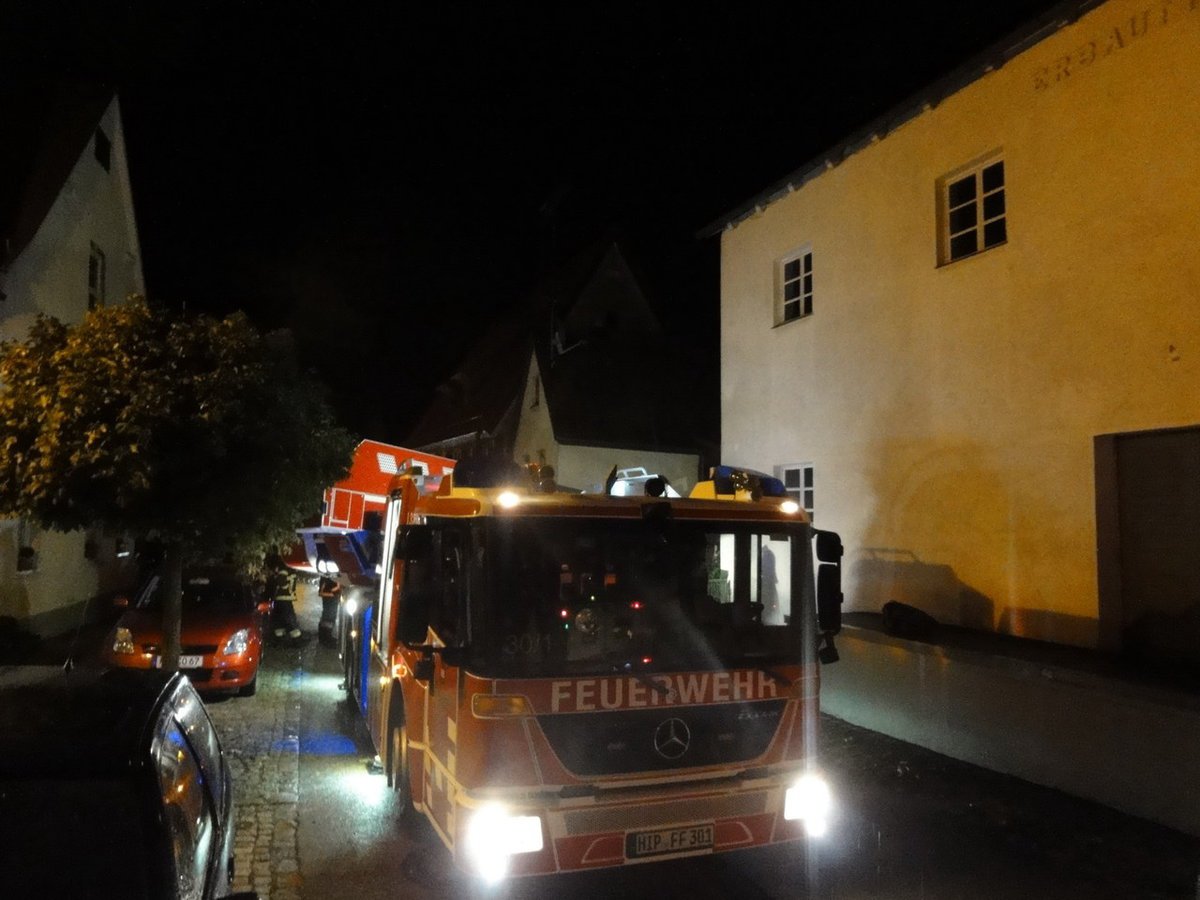 Zur Unterstützung des Rettungsdienstes wurden die Feuerwehren Heideck und Hilpoltstein alarmiert. In Heideck musste eine erkrankte Person über die Drehleiter aus dem 1. OG gerettet werden.