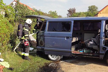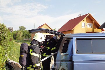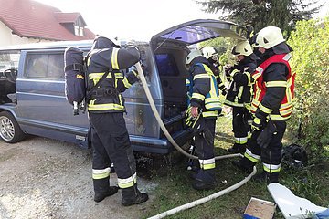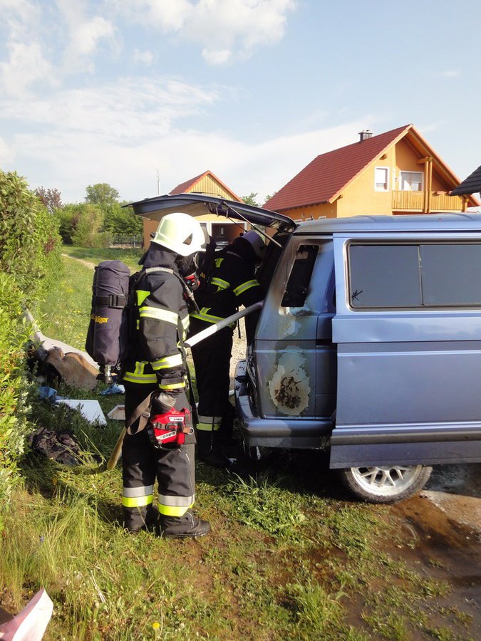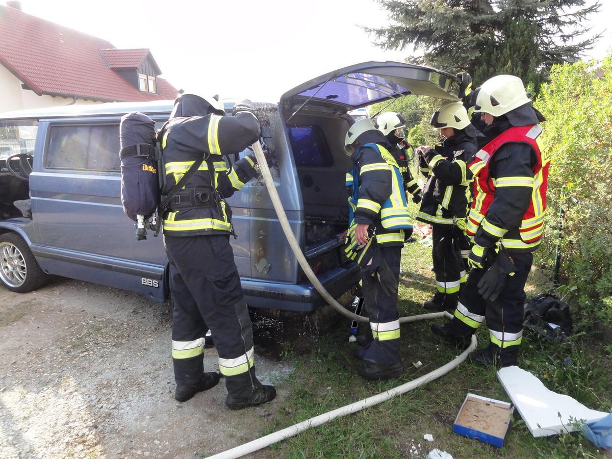 Heute rückte der Löschzug um 17:40 Uhr in den Ortsteil Solar aus. In einer Einfahrt brannte ein blauer VW-Bus im Motorbereich. Mit dem Schnellangriffsschlauch des 40/1 sowie einem C-Rohr des 40/2 konnte die Feuerwehr Hilpoltstein sowie die Feuerwehr Solar den Brand schnell löschen. Das zur Unterstützung mit ausgerückte 29/1 wurde nicht mehr benötigt. Nach gut 30 Minuten konnten die Feuerwehren wieder abrücken.