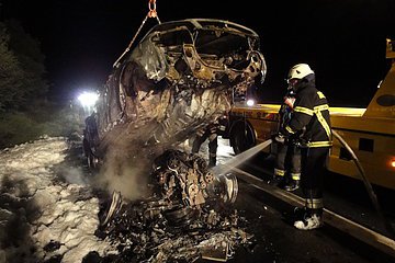 Auf der A9 in Fahrtrichtung Nürnberg stand ein PKW nach einem Unfall im Vollbrand. Unter schwerem Atemschutz und einem massiven Schaumeinsatz wurde der Brand gelöscht. Außerdem musste eine ca. 200 Meter lange Ölspur beim zweiten verunfallten Fahrzeug abgebunden werden. Während des Einsatzes musste die Autobahn kurzzeitig komplett gesperrt werden.