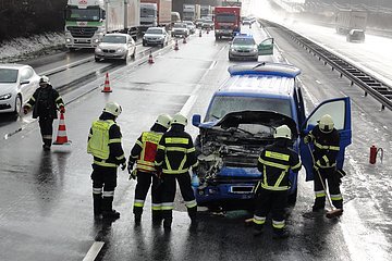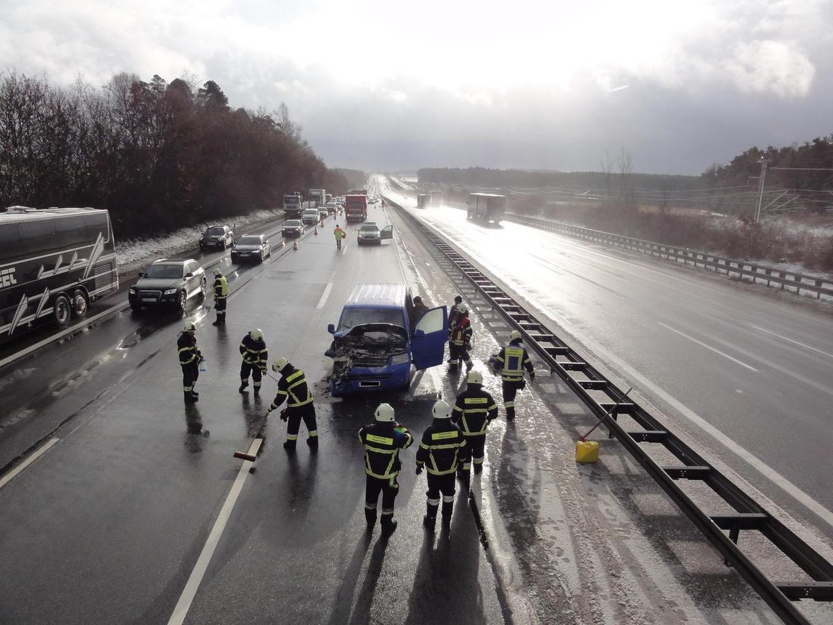 Die Feuerwehr wurde zu einem PKW-Brand auf die A9 alarmiert. Der Brand konnte jedoch von Passanten gelöscht werden. Die Arbeit beschränkte sich auf die Verkehrsabsicherung und das Binden von Betriebsstoffen.