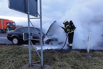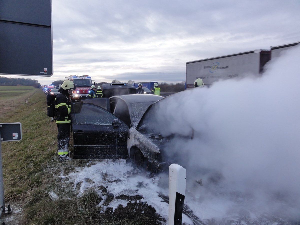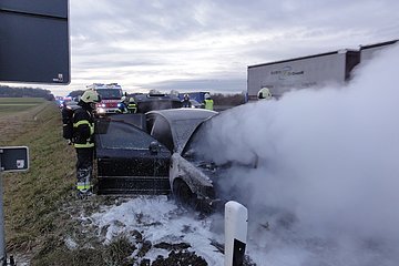 Vermutlich durch einen technischen Defekt fing ein PKW im Motorbereich Feuer. Die Einsatzstelle befand sich auf der Autobahn 9 zwischen den Anschlussstellen Hilpoltstein und Allersberg in Fahrtrichtung Nürnberg. Der im Vollbrand stehende PKW wurde unter schwerem Atemschutz durch die Feuerwehr Hilpoltstein gelöscht. Verletzt wurde niemand.