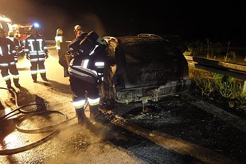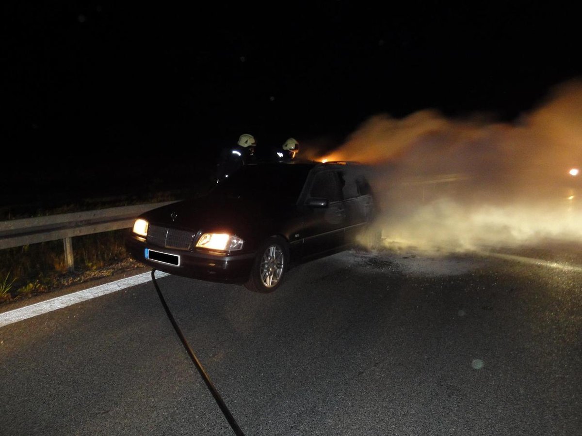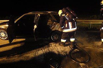 Um 23:45 Uhr wurde die Feuerwehr zu einem PKW-Brand an die Autobahnausfahrt Hilpoltstein alarmiert. Nach Eintreffen an der Einsatzstelle wurde sofort mit der Brandbekämpfung unter schwerem Atemschutz begonnen, hierbei kam der Schnellangriff zum Einsatz. Nachdem das Auto abgeschleppt und die Straße gereinigt war, konnte der Einsatz beendet werden.