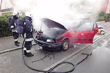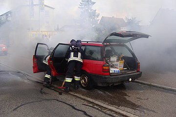 Aus ungeklärter Ursache fing ein PKW im Motorraum Feuer. Mit Hilfe des Schnellangriffs und einem Trupp unter schwerem Atemschutz wurde der Brand gelöscht. Während des Einsatzes blieb die Rother Straße gesperrt.