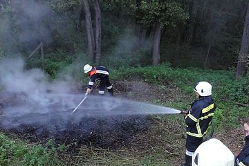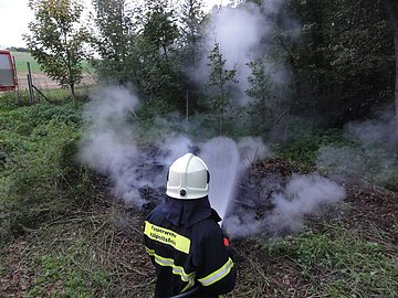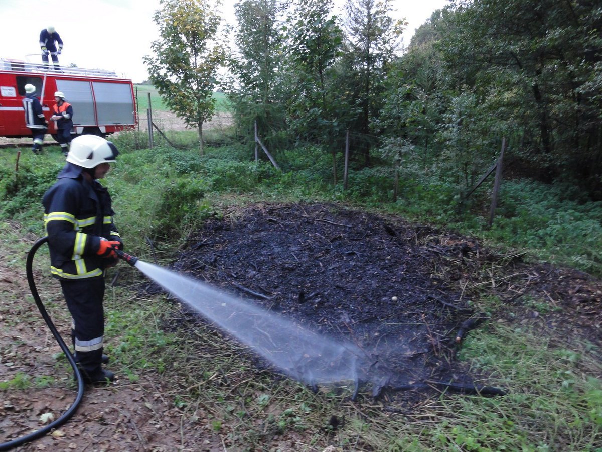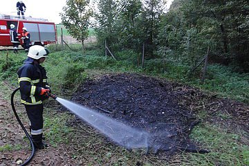 Westlich von Jahrsdorf musste ein brennender Reisighaufen durch der Feuerwehr abgelöscht werden.
