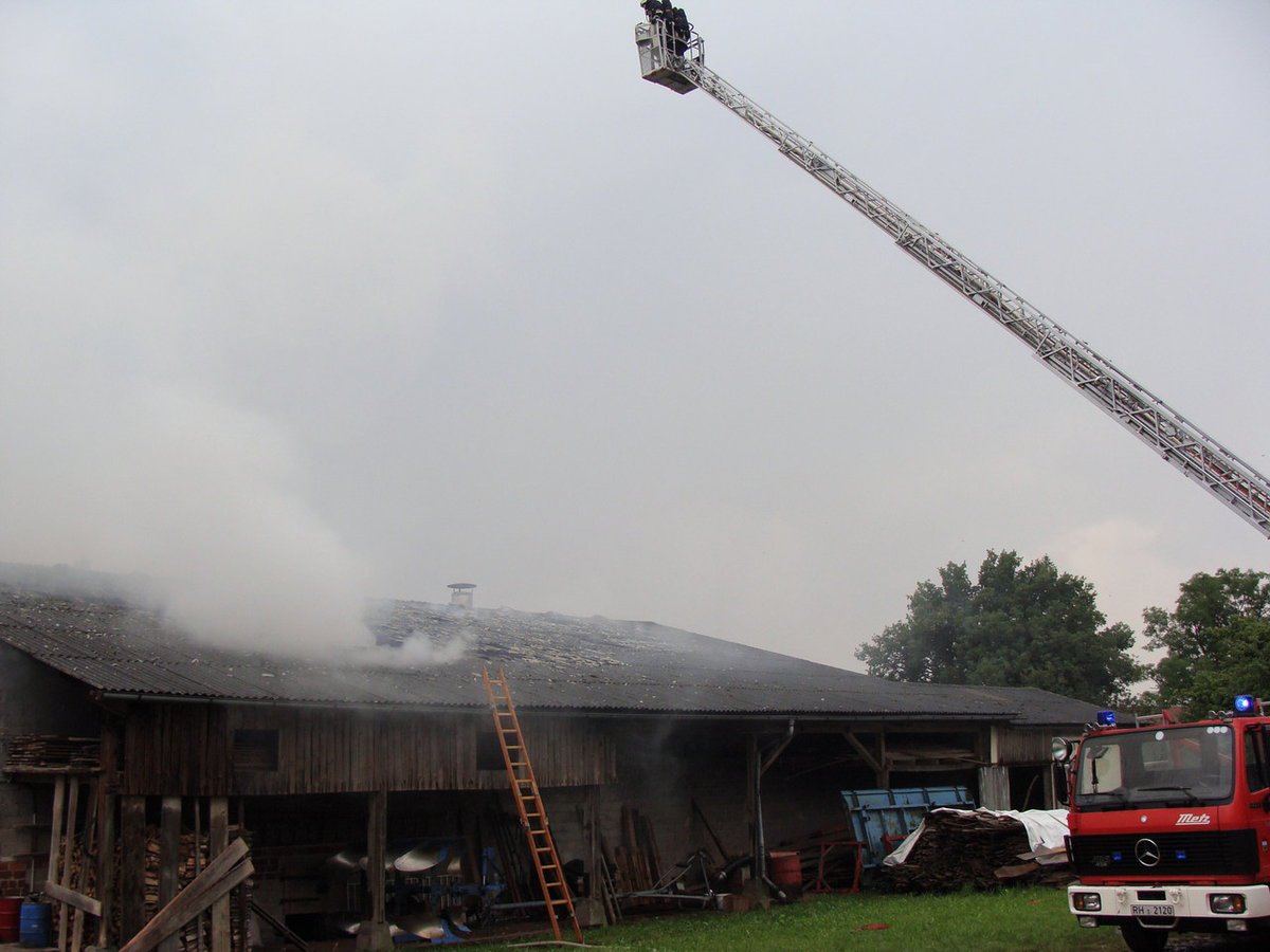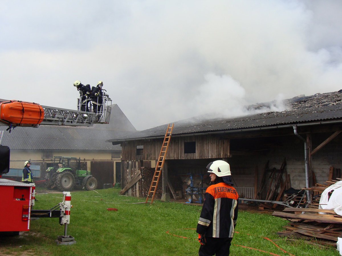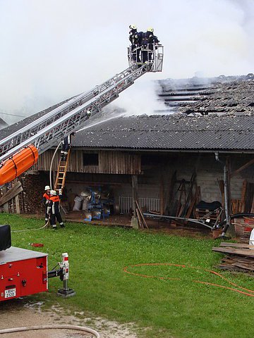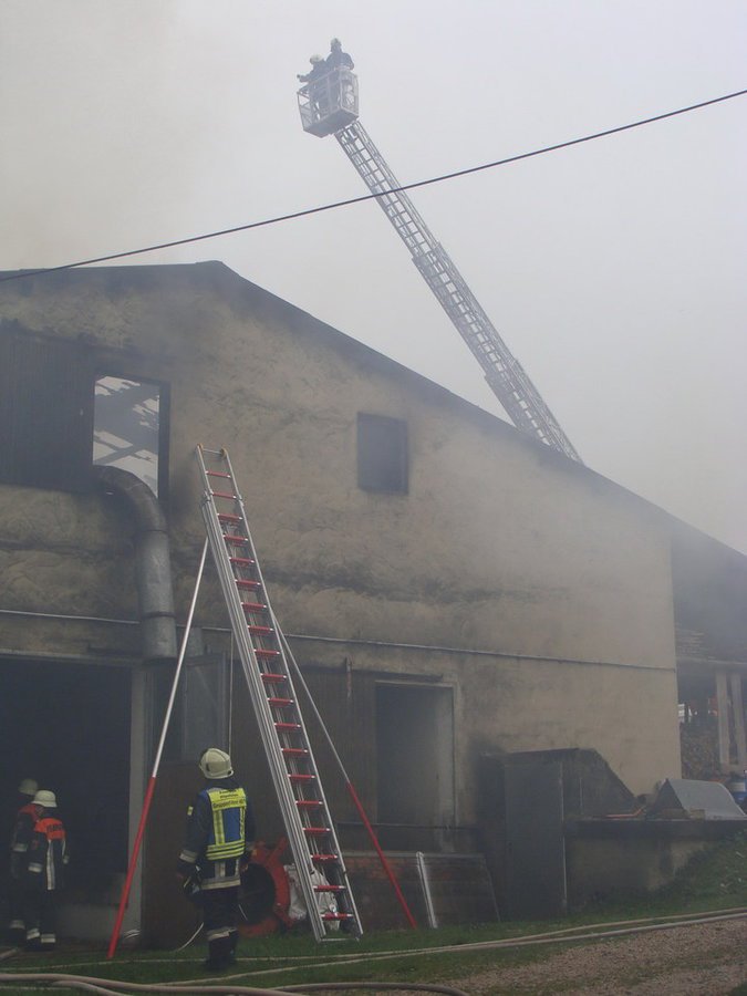 Am Nachmittag wurde die Feuerwehr Hilpoltstein zur Unterstützung der Kameraden aus Heideck zu einem Scheunenbrand in Liebenstadt alarmiert. Vor Ort wurde die Drehleiter in Stellung gebracht und das Feuer von oben bekämpft.