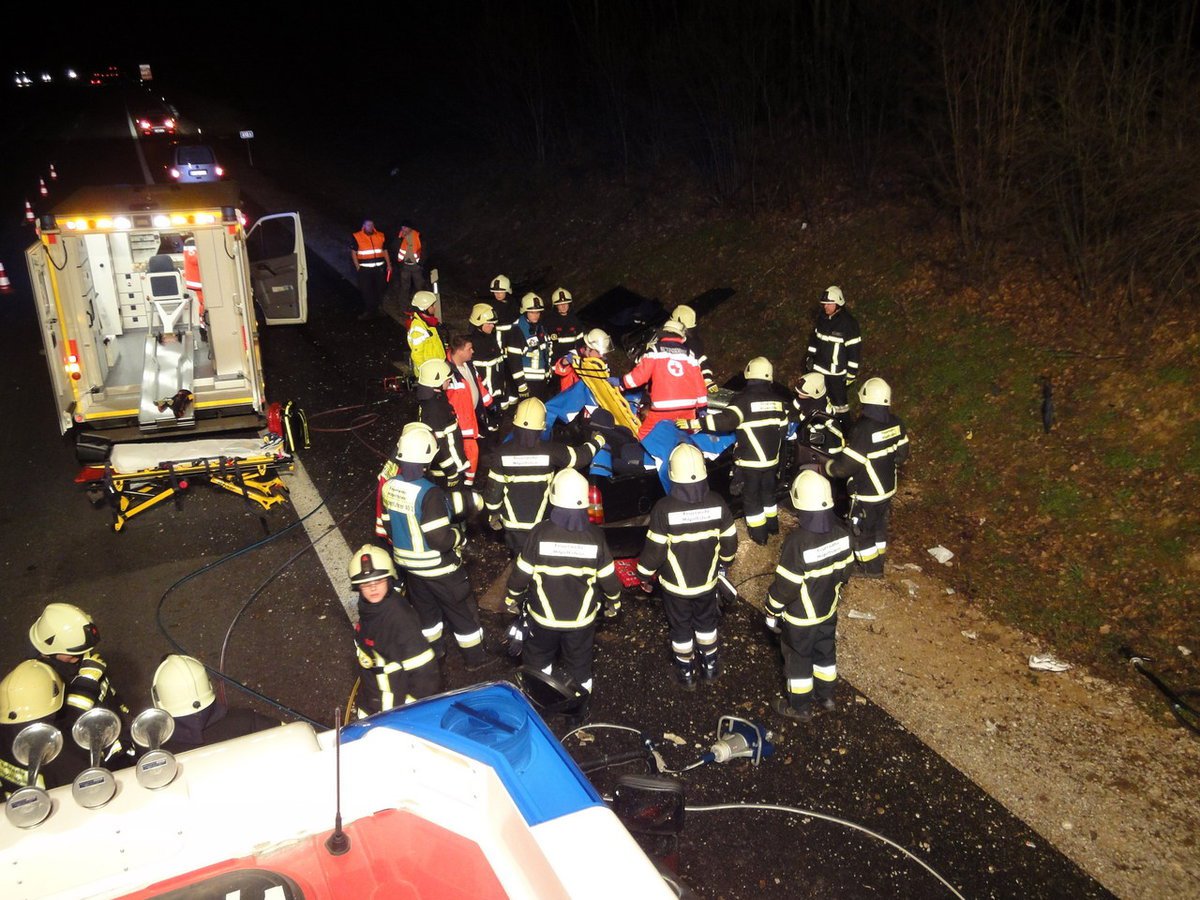 Ein PKW prallte auf der A9 in die Mittelschutzleitplanke und schleuderte anschließend nach rechts in die Böschung. Die eingklemmte Person musste mit schwerem hydraulischen Rettungsgerät aus dem Fahrzeug gerettet werden. Nach dem das Fahrzeug abgeschleppt und die Fahrbahn gereinigt war, konnte die Feuerwehr wieder abrücken.