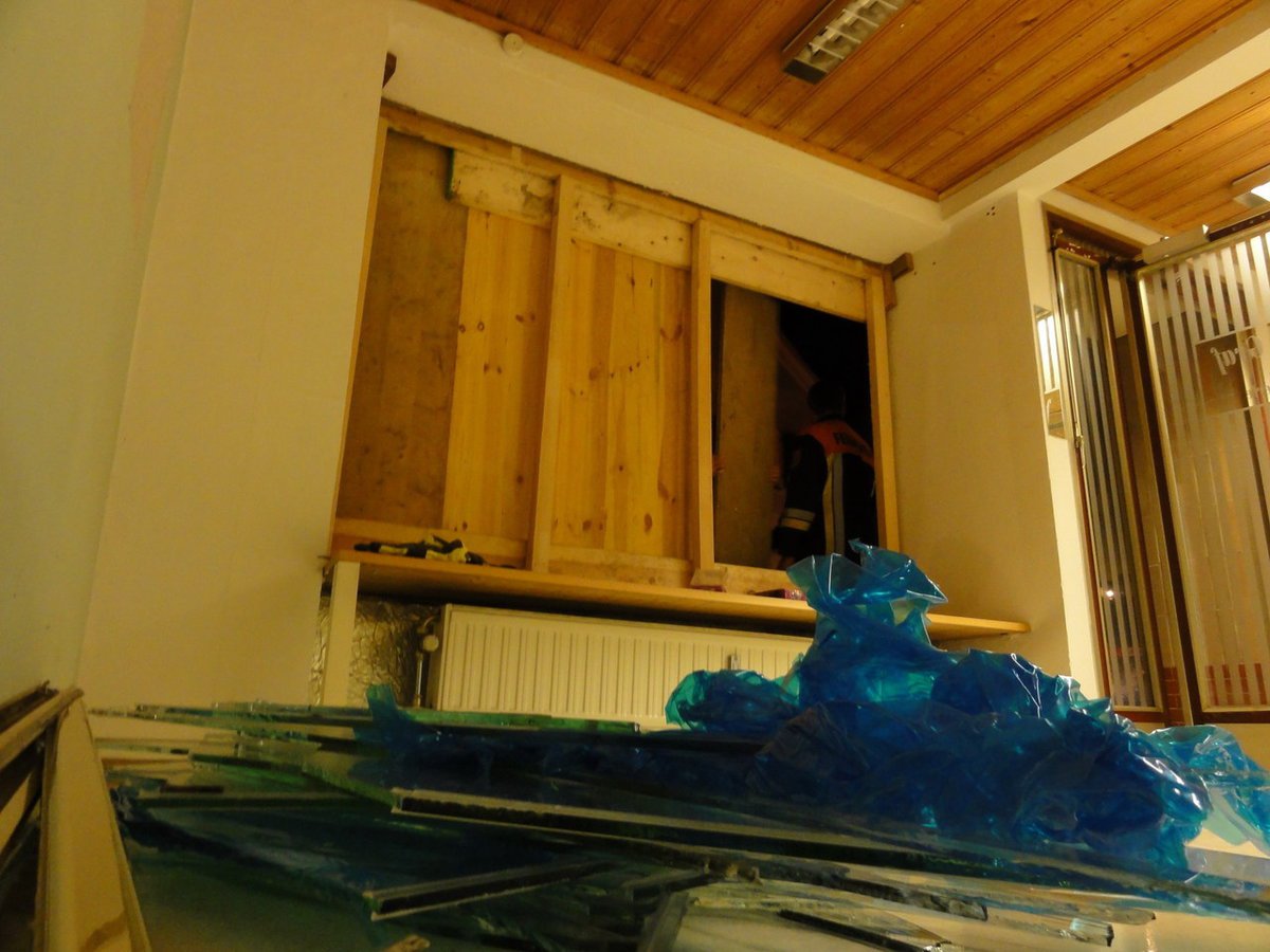 In der Christoph-Sturm-Straße musste eine eingeschlagene Schaufensterscheibe durch die Feuerwehr gesichert werden.