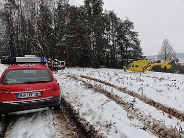Die Feuerwehren aus Offenbau und Hilpoltstein wurden zur Unterstützung des Rettungsdienstes alarmiert. Nach einem Forstunfall musste ein Patient mittels Schleifkorbtrage aus dem schwer zugänglichen Gelände getragen werden. Anschließend wurde er mit einem Rettungshubschrauber in ein Krankenhaus geflogen.