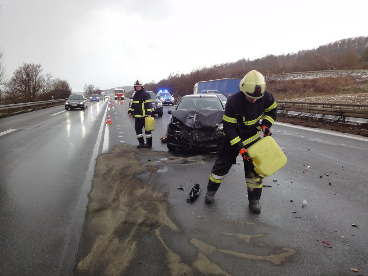 Aufgrund der Witterung ereigneten sich mehrere Verkehrsunfälle auf der A9. Zur Unterstützung der Polizei übernahm die Feuerwehr Hilpoltstein die Verkehrsabsicherung bei einem Unfall mit drei beteiligten Fahrzeugen auf der Autobahn in Richtung München. Ebenso wurde die Erstversorgung einer verletzten Person übernommen.
