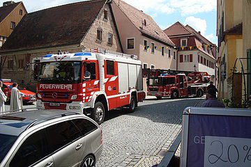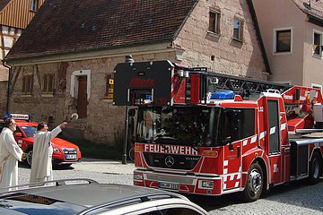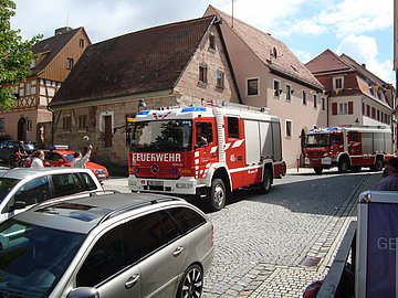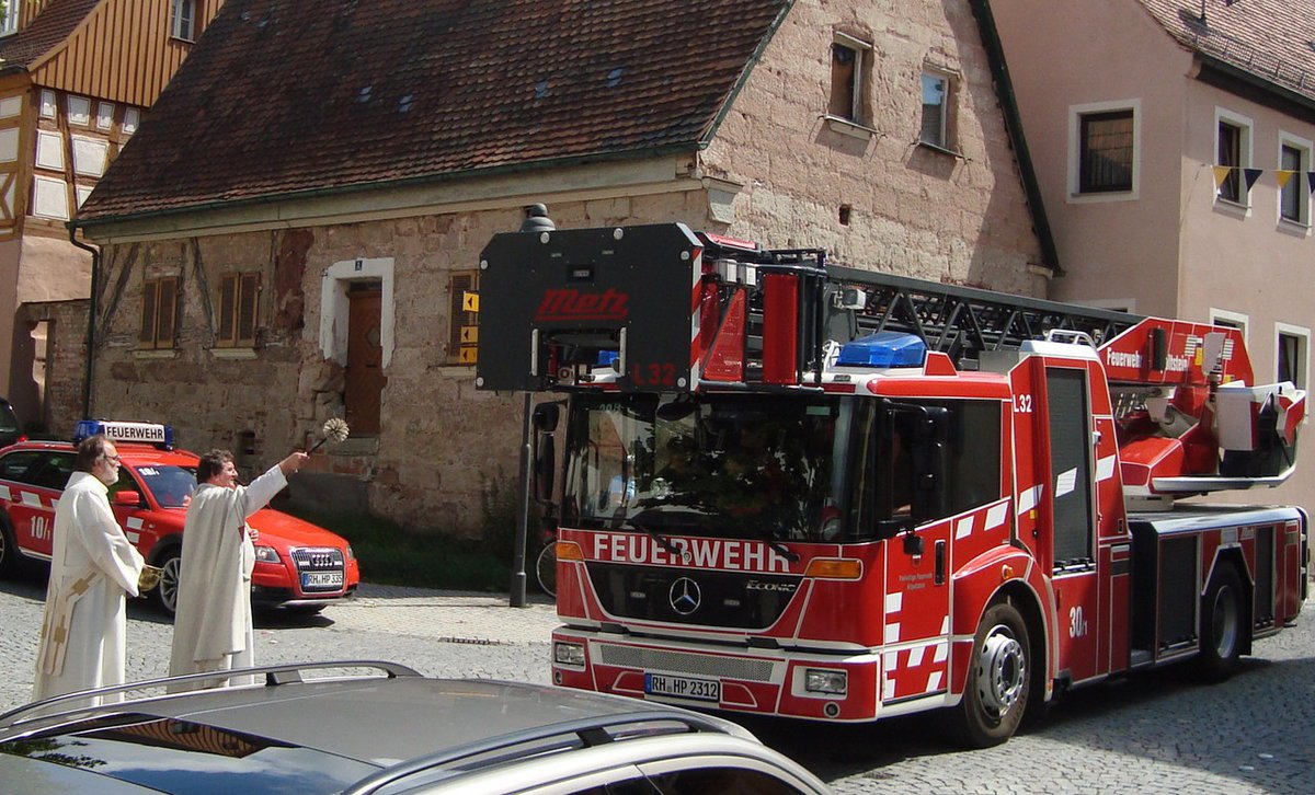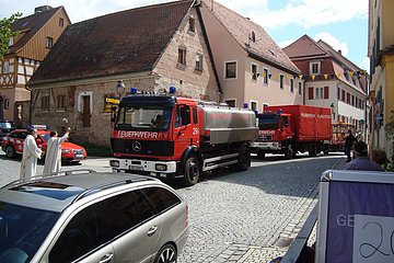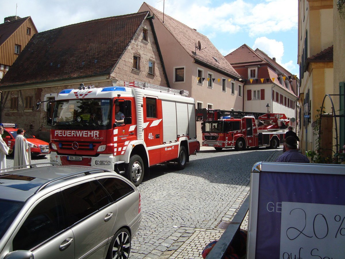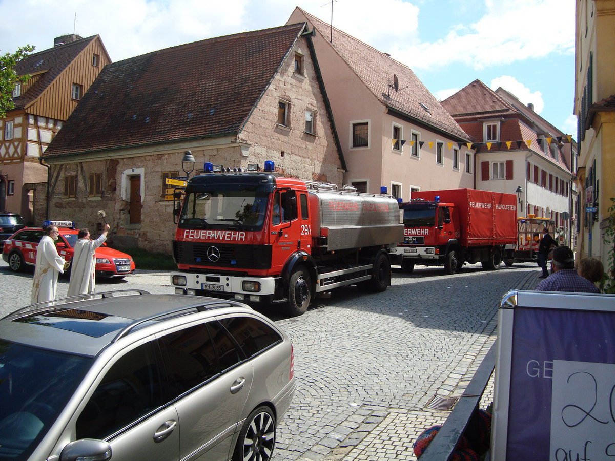 Anlässlich der Fahrzeugsegnung regelte die Feuerwehr Hilpoltstein den Verkehr in der Innenstadt. Danach wurden die Einsatzfahrzeuge gesegnet.