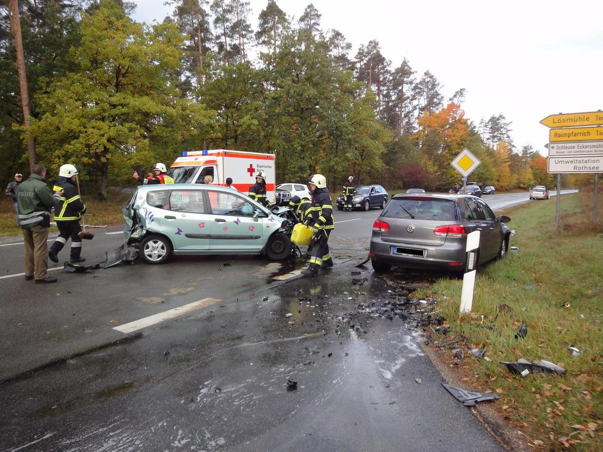 Erneut ereignete sich auf der Staatsstraße zwischen Hilpoltstein und Eckersmühlen, Höhe Abzweigung Haimpfarrich, ein Verkehrsunfall. Beteiligt waren drei Autos. Die Feuerwehr Hilpoltstein regelte den Verkehr und band die ausgelaufenen Betriebsstoffe.