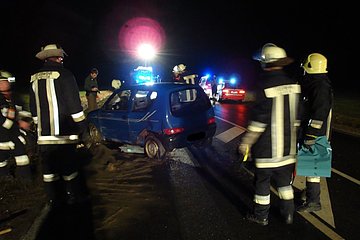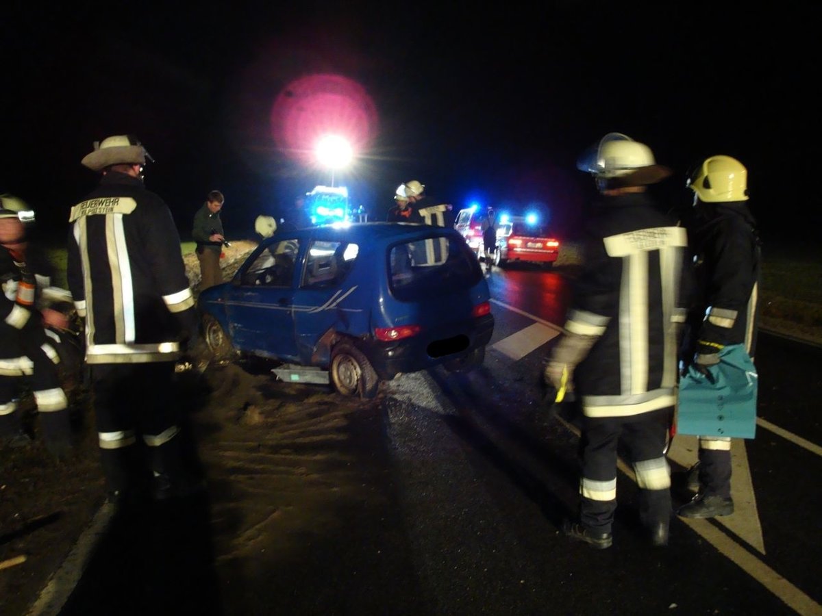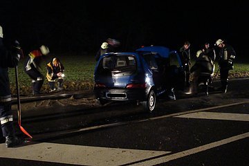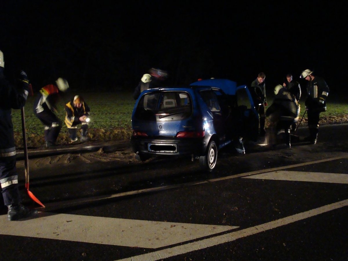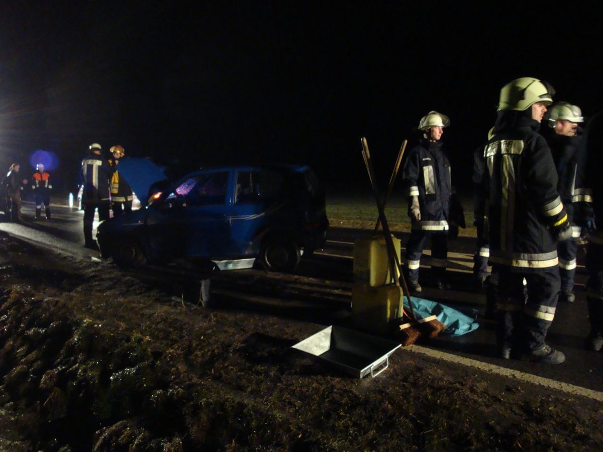 Nach einem Verkehrsunfall mit einem PKW musste auslaufender Kraftstoff gebunden werden.