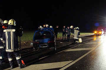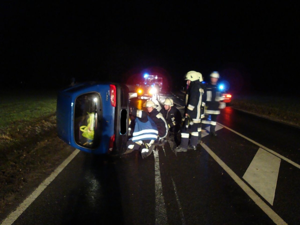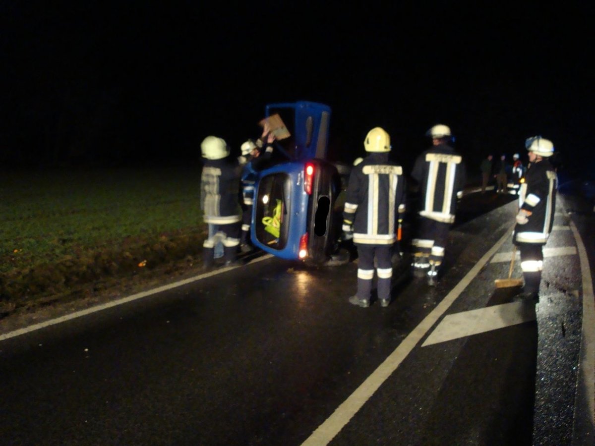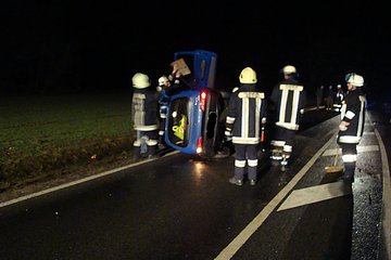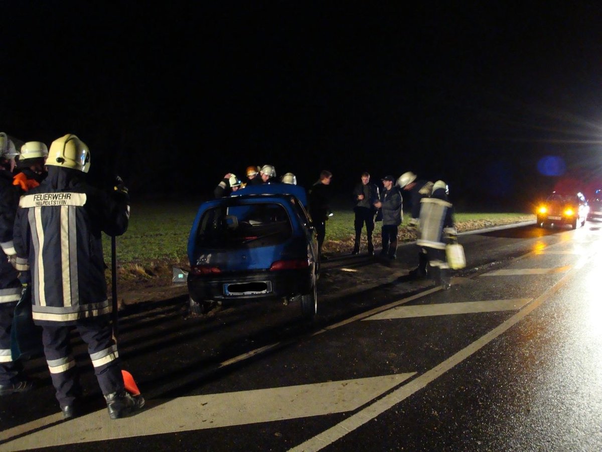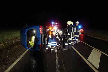 Nach einem Verkehrsunfall mit einem PKW musste auslaufender Kraftstoff gebunden werden.