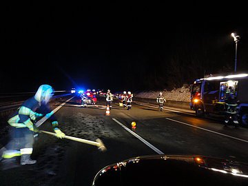Die Feuerwehr Hilpoltstein wurde zu einem Verkehrsunfall auf die A9 in Richtung München alarmiert. Beteiligt waren vier Fahrzeuge. Die Feuerwehr band Betriebsstoffe, reinigte die Fahrbahn und übernahm die Verkehrsabsicherung an der Einsatzstelle.